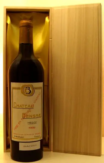1932年 フランス産1932年 シャトー・ド・ベネッセのヴィンテージワイン。贈り物やギフトに最適な、格調高い生まれ年ワインです。大切にされたボトル入りのお花が箱に包まれた本品は、特別な贈り物としてきっと喜ばれます。