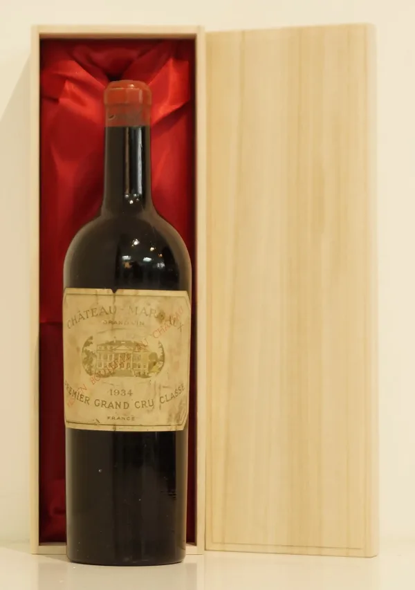 1934年 フランス産1934年 シャトー・マルゴーのヴィンテージワイン。贈り物やギフトに最適な、格調高い生まれ年ワインです。大切にされたボトル入りのお花が箱に包まれた本品は、特別な贈り物としてきっと喜ばれます。