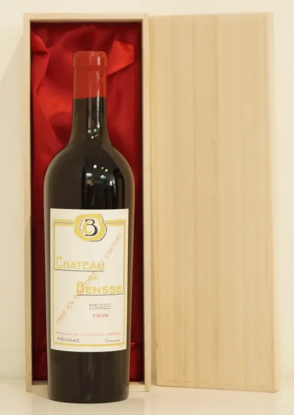 1939年 フランス産1939年 シャトー・ド・ベンセ・メドックのヴィンテージワイン。贈り物やギフトに最適な、格調高い生まれ年ワインです。大切にされたボトル入りのお花が箱に包まれた本品は、特別な贈り物としてきっと喜ばれます。