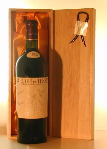 1940年 フランス産1940年 シャトー・マルキ・ド・テルムのヴィンテージワイン。贈り物やギフトに最適な、格調高い生まれ年ワインです。大切にされたボトル入りのお花が箱に包まれた本品は、特別な贈り物としてきっと喜ばれます。