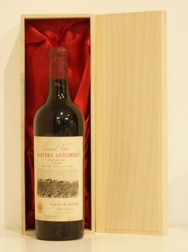 1942年 フランス産1942年 シャトー・ラスコンブ①のヴィンテージワイン。贈り物やギフトに最適な、格調高い生まれ年ワインです。大切にされたボトル入りのお花が箱に包まれた本品は、特別な贈り物としてきっと喜ばれます。