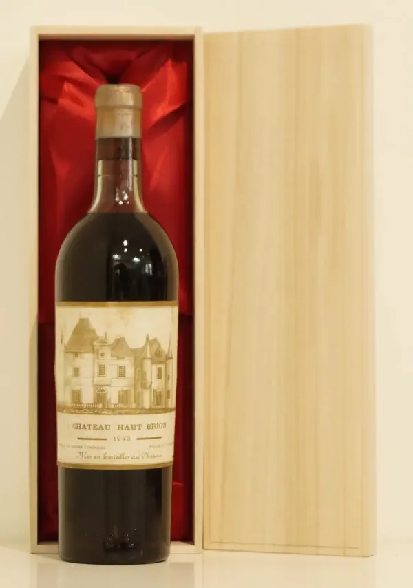 1943年 フランス産1943年 シャトー・オーブリオンのヴィンテージワイン。贈り物やギフトに最適な、格調高い生まれ年ワインです。大切にされたボトル入りのお花が箱に包まれた本品は、特別な贈り物としてきっと喜ばれます。