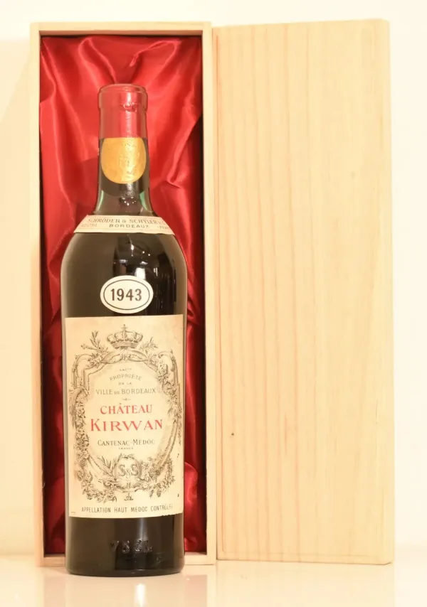 1943年 フランス産1943年 シャトー・キルヴァンのヴィンテージワイン。贈り物やギフトに最適な、格調高い生まれ年ワインです。大切にされたボトル入りのお花が箱に包まれた本品は、特別な贈り物としてきっと喜ばれます。