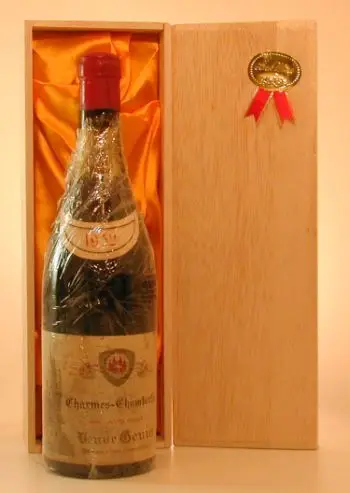 1952年 フランス産1952年 シャルム・シャンベルタンのヴィンテージワイン。贈り物やギフトに最適な、格調高い生まれ年ワインです。大切にされたボトル入りのお花が箱に包まれた本品は、特別な贈り物としてきっと喜ばれます。