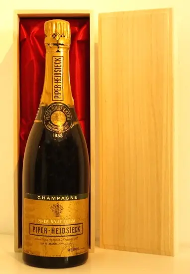 1953年 フランス産1953年 パイパー・エドシック エキストラ・ブリュットのヴィンテージワイン。贈り物やギフトに最適な、格調高い生まれ年ワインです。大切にされたボトル入りのお花が箱に包まれた本品は、特別な贈り物としてきっと喜ばれます。