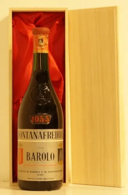 1955年 イタリア産1955年 バローロ フォンタナフレッダのヴィンテージワイン。贈り物やギフトに最適な、格調高い生まれ年ワインです。大切にされたボトル入りのお花が箱に包まれた本品は、特別な贈り物としてきっと喜ばれます。