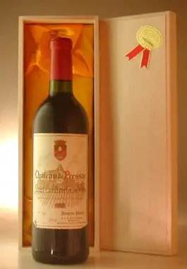 1957年 フランス産1957 シャトー・プレサック Pressacのヴィンテージワイン。贈り物やギフトに最適な、格調高い生まれ年ワインです。大切にされたボトル入りのお花が箱に包まれた本品は、特別な贈り物としてきっと喜ばれます。