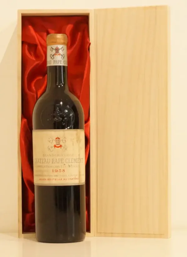 1958年 フランス産1958年 シャトー・パプ・クレマン(赤)のヴィンテージワイン。贈り物やギフトに最適な、格調高い生まれ年ワインです。大切にされたボトル入りのお花が箱に包まれた本品は、特別な贈り物としてきっと喜ばれます。
