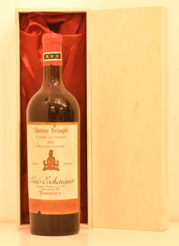 1959年 フランス産1959年 シャトー・レヴァンジルのヴィンテージワイン。贈り物やギフトに最適な、格調高い生まれ年ワインです。大切にされたボトル入りのお花が箱に包まれた本品は、特別な贈り物としてきっと喜ばれます。
