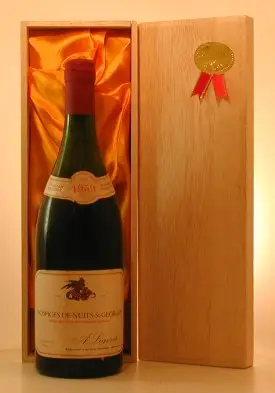 1959年 フランス産1959年 オスピス・ド・ニュイ・サン・ジョルジュ ニュイ・サン・ジョルジュ(ラベルの状態をご確認ください)のヴィンテージワイン。贈り物やギフトに最適な、格調高い生まれ年ワインです。大切にされたボトル入りのお花が箱に包まれた本品は、特別な贈り物としてきっと喜ばれます。