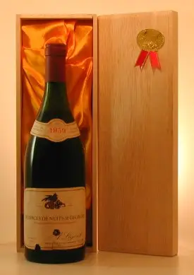 1959年 フランス産1959年 オスピス・ド・ニュイ・サン・ジョルジュ ニュイ・サン・ジョルジュ(ラベルの状態をご確認ください)のヴィンテージワイン。贈り物やギフトに最適な、格調高い生まれ年ワインです。大切にされたボトル入りのお花が箱に包まれた本品は、特別な贈り物としてきっと喜ばれます。