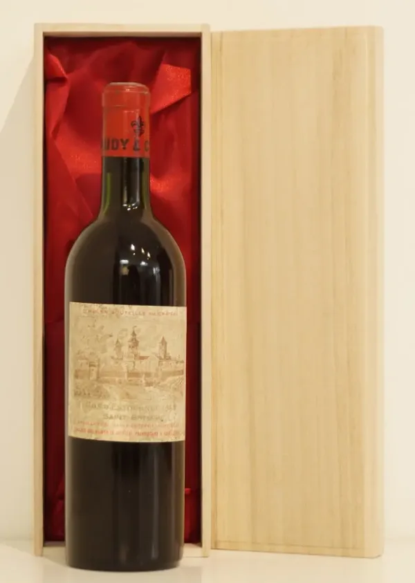1960年 フランス産1960年 シャトー・コス・デストゥルネル(①ラベルの状態をお確かめください)のヴィンテージワイン。贈り物やギフトに最適な、格調高い生まれ年ワインです。大切にされたボトル入りのお花が箱に包まれた本品は、特別な贈り物としてきっと喜ばれます。