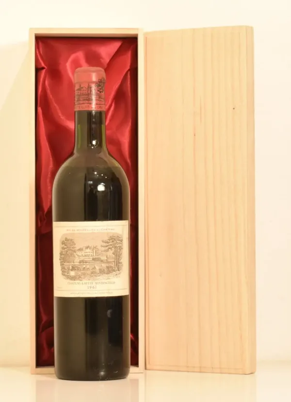 1961年 フランス産1961年 シャトー・ラフィット・ロートシルトのヴィンテージワイン。贈り物やギフトに最適な、格調高い生まれ年ワインです。大切にされたボトル入りのお花が箱に包まれた本品は、特別な贈り物としてきっと喜ばれます。