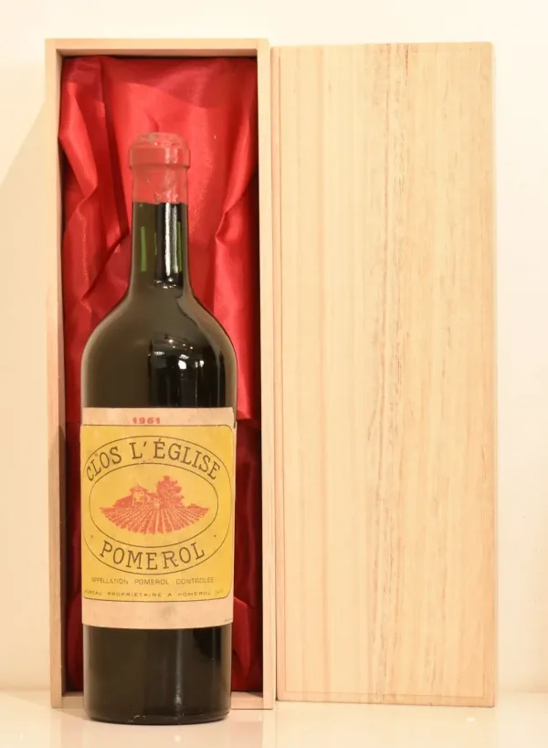 1961年 フランス産1961年 クロ・レグリーズ ポムロールのヴィンテージワイン。贈り物やギフトに最適な、格調高い生まれ年ワインです。大切にされたボトル入りのお花が箱に包まれた本品は、特別な贈り物としてきっと喜ばれます。