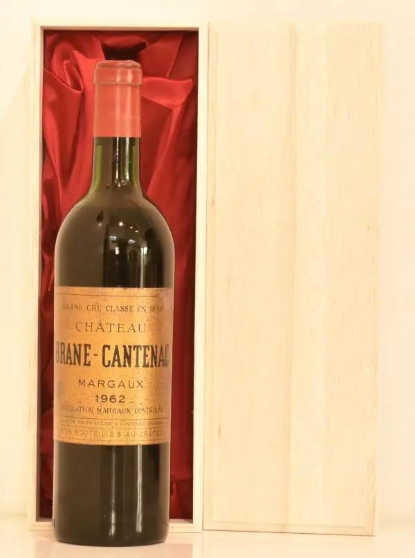 1962年 フランス産1962年 シャトー・ブラーヌ・カントナックのヴィンテージワイン。贈り物やギフトに最適な、格調高い生まれ年ワインです。大切にされたボトル入りのお花が箱に包まれた本品は、特別な贈り物としてきっと喜ばれます。