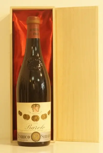 1962年 イタリア産1962年 Riserva Serafino Baroloのヴィンテージワイン。贈り物やギフトに最適な、格調高い生まれ年ワインです。大切にされたボトル入りのお花が箱に包まれた本品は、特別な贈り物としてきっと喜ばれます。