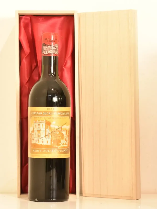 1962年 フランス産1962年 シャトー・デュクリュ・ボーカイユのヴィンテージワイン。贈り物やギフトに最適な、格調高い生まれ年ワインです。大切にされたボトル入りのお花が箱に包まれた本品は、特別な贈り物としてきっと喜ばれます。