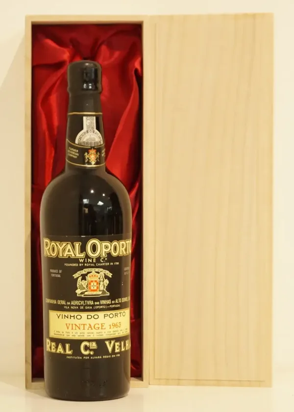 1963年 ポルトガル産1963年 ROYAL PORTOのヴィンテージワイン。贈り物やギフトに最適な、格調高い生まれ年ワインです。大切にされたボトル入りのお花が箱に包まれた本品は、特別な贈り物としてきっと喜ばれます。