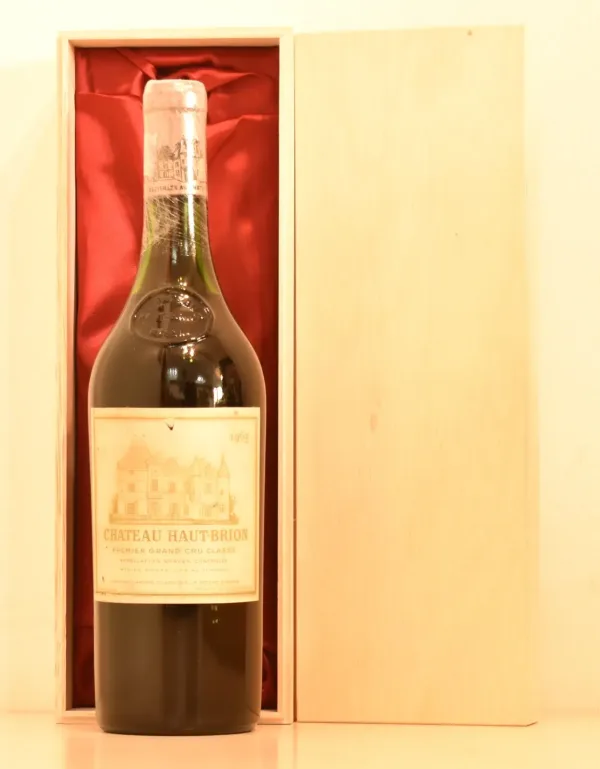 1965年 フランス産1965年 シャトー・オーブリオンのヴィンテージワイン。贈り物やギフトに最適な、格調高い生まれ年ワインです。大切にされたボトル入りのお花が箱に包まれた本品は、特別な贈り物としてきっと喜ばれます。