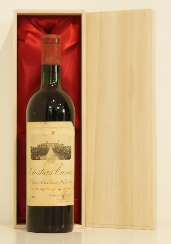 1966年 フランス産1966年 シャトー・カノンのヴィンテージワイン。贈り物やギフトに最適な、格調高い生まれ年ワインです。大切にされたボトル入りのお花が箱に包まれた本品は、特別な贈り物としてきっと喜ばれます。