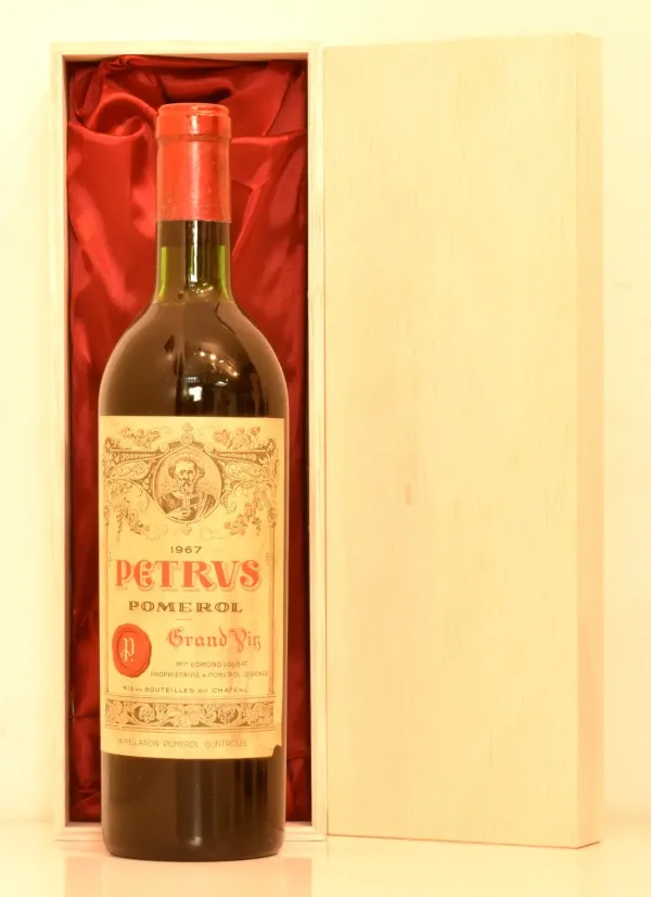1967年 フランス産1967年 シャトー・ペトリュスのヴィンテージワイン。贈り物やギフトに最適な、格調高い生まれ年ワインです。大切にされたボトル入りのお花が箱に包まれた本品は、特別な贈り物としてきっと喜ばれます。