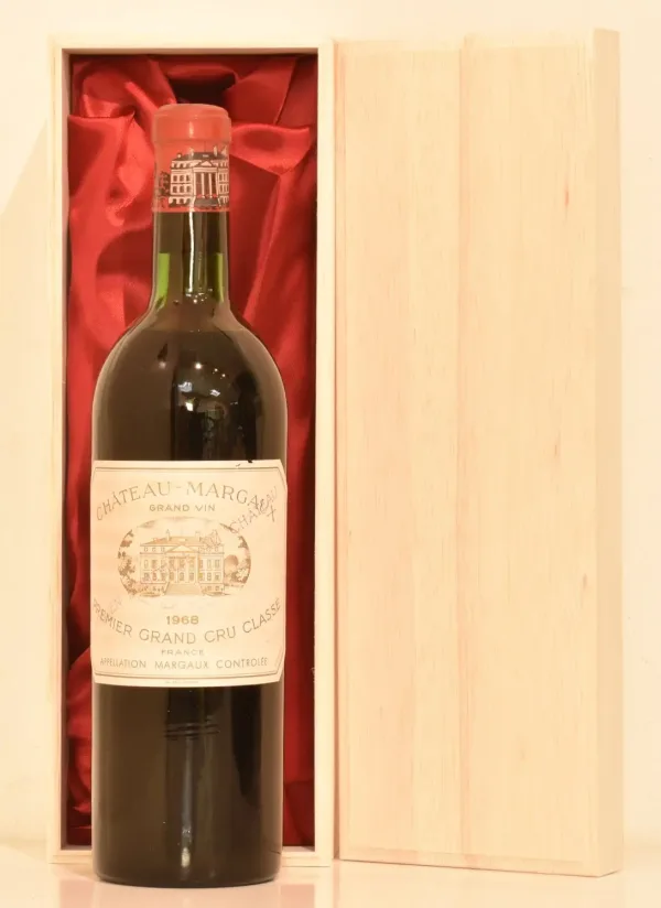 1968年 フランス産1968年 シャトー・マルゴーのヴィンテージワイン。贈り物やギフトに最適な、格調高い生まれ年ワインです。大切にされたボトル入りのお花が箱に包まれた本品は、特別な贈り物としてきっと喜ばれます。