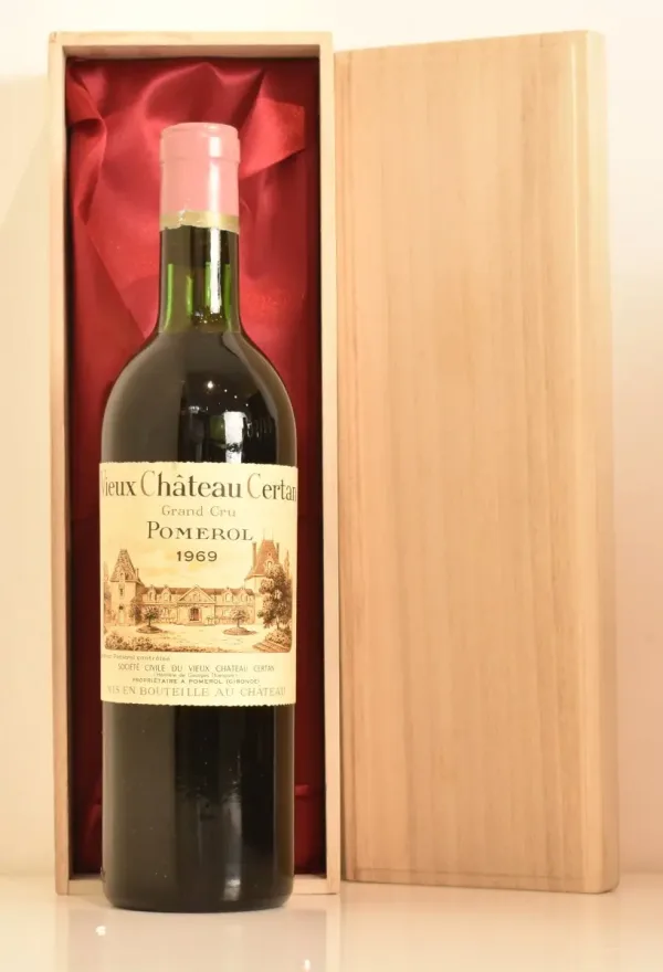 1969年 フランス産1969年 ヴュー・シャトー・セルタンのヴィンテージワイン。贈り物やギフトに最適な、格調高い生まれ年ワインです。大切にされたボトル入りのお花が箱に包まれた本品は、特別な贈り物としてきっと喜ばれます。