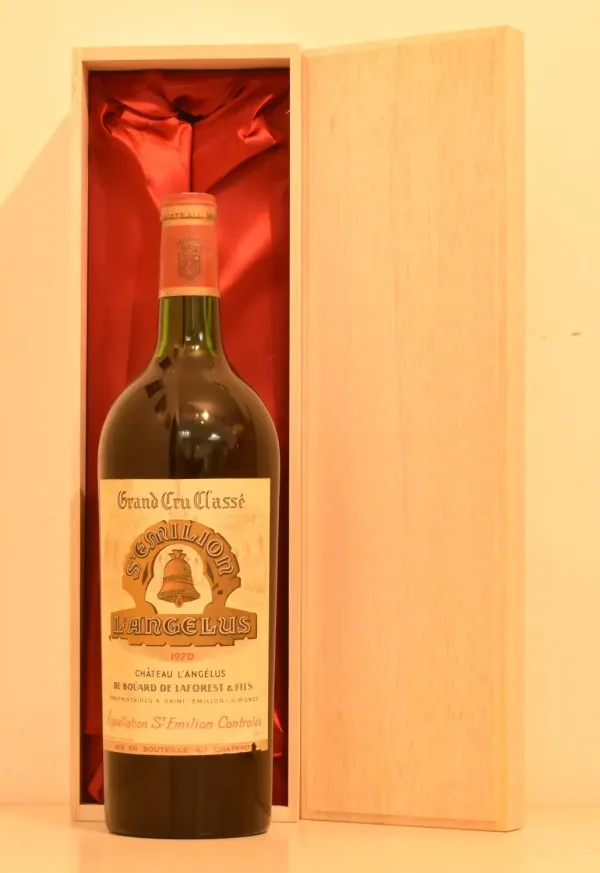 シャトー・アンジェラスは、サン・テミリオンの中でも特に評価の高い「第一特別級(Premier Grand Cru Classé A)」に格付けされた名門であり、そのワイン造りには一貫して情熱と職人技が注ぎ込まれています。メルロ主体にカベルネ・フランを巧みにブレンドすることで生まれる、豊かな果実味と力強さ、そして繊細な香りの調和こそが、このシャトーの真骨頂です。1970年は今やコレクターズアイテムとしても稀少価値が高く、オークション市場でも高価格で取引されることが多い珠玉の一本です。熟成によって一層深みを増したその味わいは、まさに時を超えた芸術品といえるでしょう。
