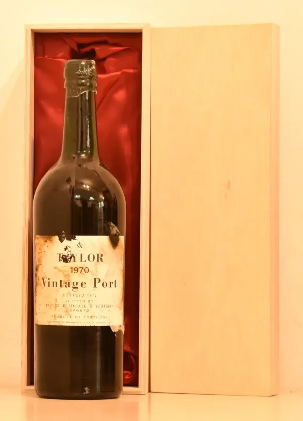 1970年 ポルトガル産1970年 テイラーズ ヴィンテージ ポート①のヴィンテージワイン。贈り物やギフトに最適な、格調高い生まれ年ワインです。大切にされたボトル入りのお花が箱に包まれた本品は、特別な贈り物としてきっと喜ばれます。