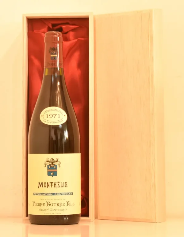 1971年 フランス産1971年 ピエール・ブレ モンテリー・ルージュのヴィンテージワイン。贈り物やギフトに最適な、格調高い生まれ年ワインです。大切にされたボトル入りのお花が箱に包まれた本品は、特別な贈り物としてきっと喜ばれます。