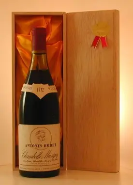 1972年 フランス産1972年 アントナン・ロデ シャンボール・ミュジニイのヴィンテージワイン。贈り物やギフトに最適な、格調高い生まれ年ワインです。大切にされたボトル入りのお花が箱に包まれた本品は、特別な贈り物としてきっと喜ばれます。