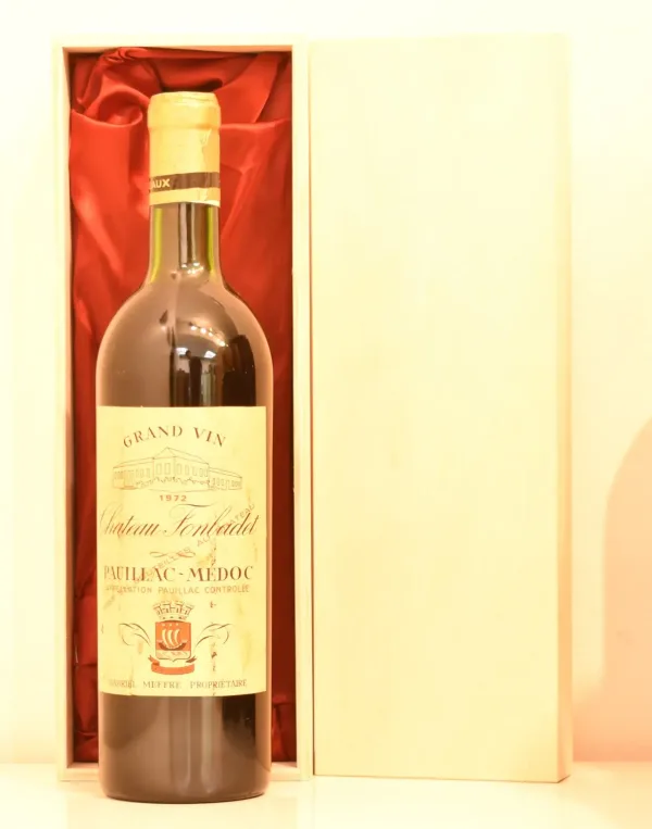 1972年 フランス産1972年 シャトー・フォンバデのヴィンテージワイン。贈り物やギフトに最適な、格調高い生まれ年ワインです。大切にされたボトル入りのお花が箱に包まれた本品は、特別な贈り物としてきっと喜ばれます。