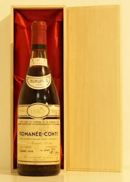 1974年 フランス産1974年 DRC ロマネ・コンティのヴィンテージワイン。贈り物やギフトに最適な、格調高い生まれ年ワインです。大切にされたボトル入りのお花が箱に包まれた本品は、特別な贈り物としてきっと喜ばれます。