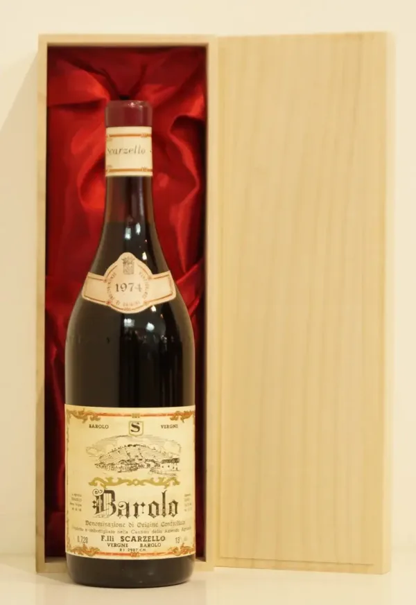 1974年 イタリア産1974年 バローロ・スカルゼッロのヴィンテージワイン。贈り物やギフトに最適な、格調高い生まれ年ワインです。大切にされたボトル入りのお花が箱に包まれた本品は、特別な贈り物としてきっと喜ばれます。