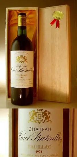 1975年 フランス産1975 シャトー・オー・バタイエ Haut Batailleyのヴィンテージワイン。贈り物やギフトに最適な、格調高い生まれ年ワインです。大切にされたボトル入りのお花が箱に包まれた本品は、特別な贈り物としてきっと喜ばれます。