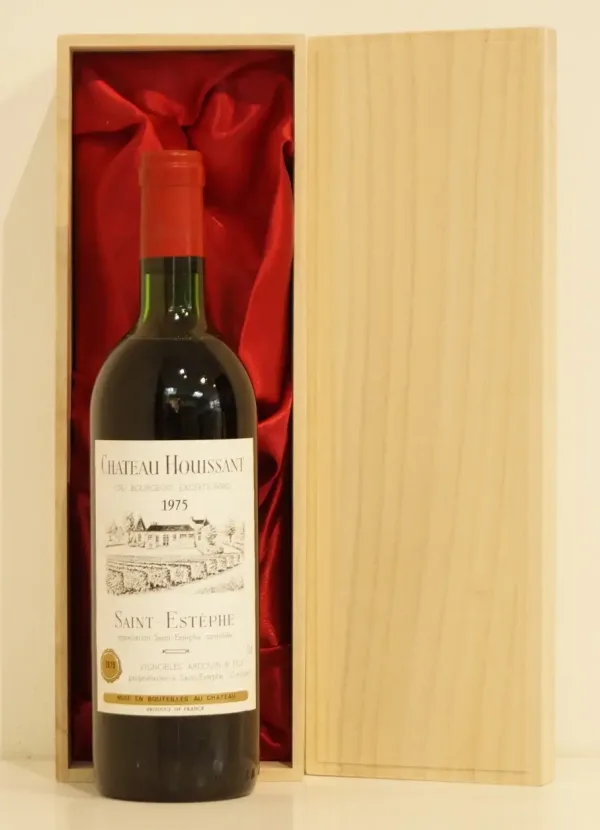 1975年 フランス産1975年 シャトー・ウイサンのヴィンテージワイン。贈り物やギフトに最適な、格調高い生まれ年ワインです。大切にされたボトル入りのお花が箱に包まれた本品は、特別な贈り物としてきっと喜ばれます。