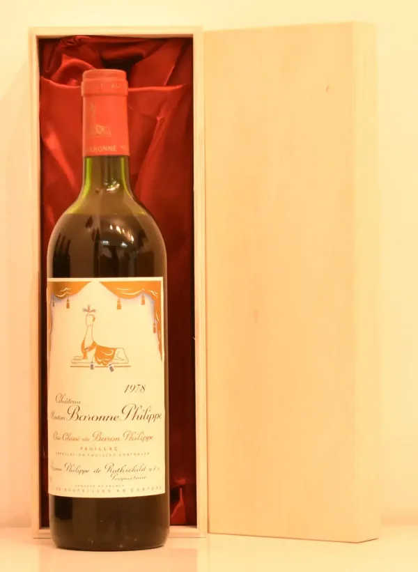 1978年 フランス産1978年 ムートン・バロン・フィリップのヴィンテージワイン。贈り物やギフトに最適な、格調高い生まれ年ワインです。大切にされたボトル入りのお花が箱に包まれた本品は、特別な贈り物としてきっと喜ばれます。