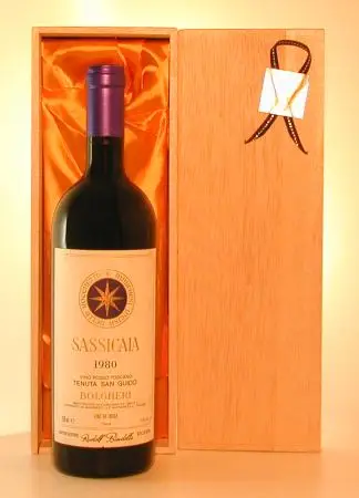 1980年 イタリア産1980年 サッシカイアのヴィンテージワイン。贈り物やギフトに最適な、格調高い生まれ年ワインです。大切にされたボトル入りのお花が箱に包まれた本品は、特別な贈り物としてきっと喜ばれます。