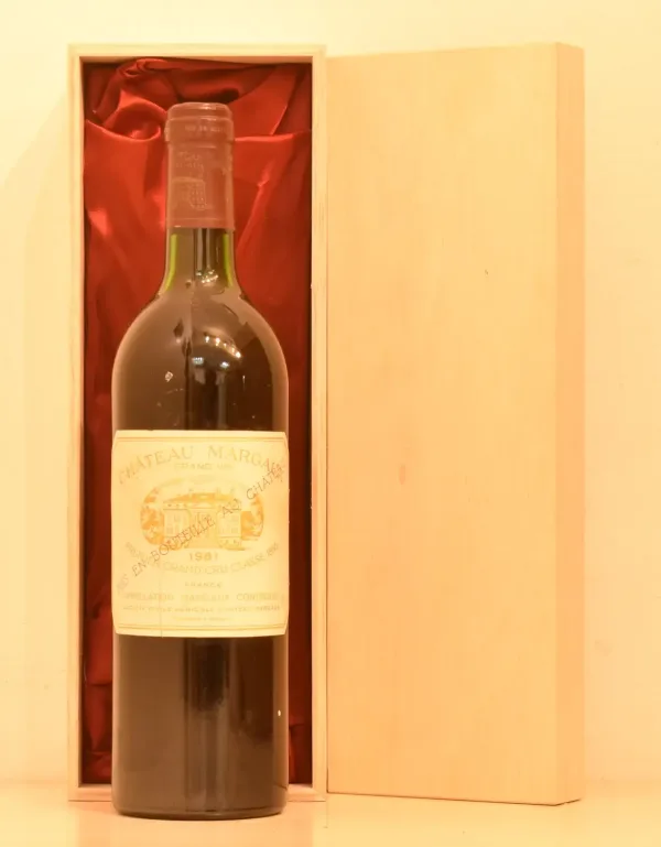 1981年 フランス産1981年 シャトー・マルゴーのヴィンテージワイン。贈り物やギフトに最適な、格調高い生まれ年ワインです。大切にされたボトル入りのお花が箱に包まれた本品は、特別な贈り物としてきっと喜ばれます。