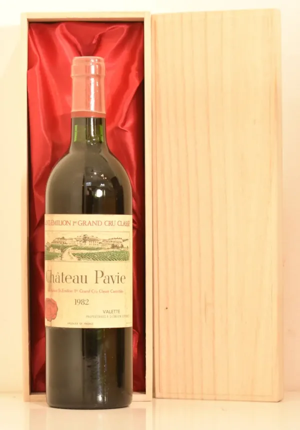 1982年 フランス産1982年 シャトー・パヴィのヴィンテージワイン。贈り物やギフトに最適な、格調高い生まれ年ワインです。大切にされたボトル入りのお花が箱に包まれた本品は、特別な贈り物としてきっと喜ばれます。