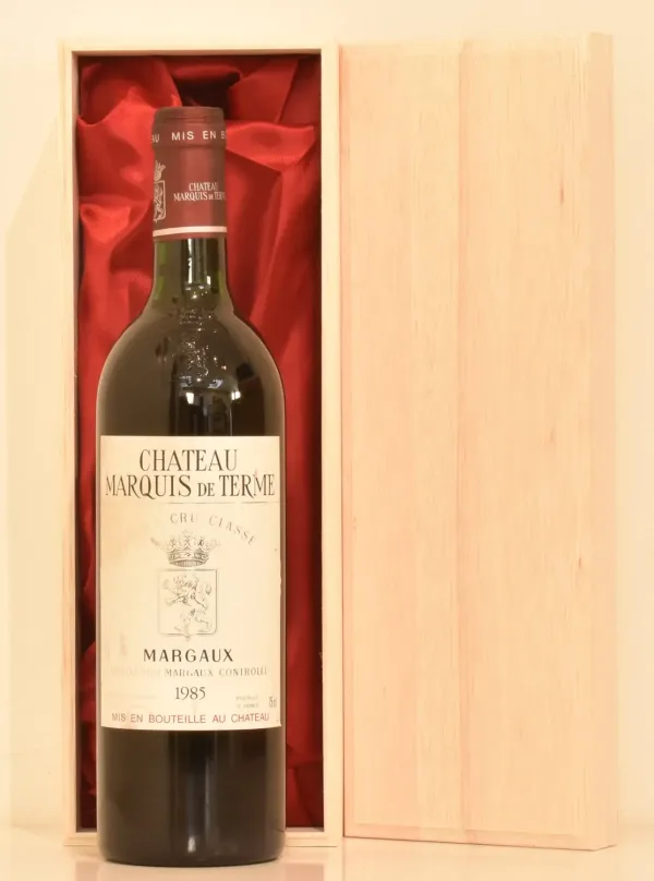 1985年 フランス産1985年 シャトー・マルキ・ド・テルムのヴィンテージワイン。贈り物やギフトに最適な、格調高い生まれ年ワインです。大切にされたボトル入りのお花が箱に包まれた本品は、特別な贈り物としてきっと喜ばれます。