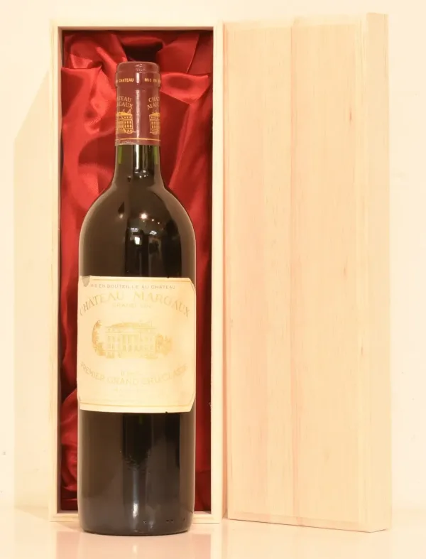 1985年 フランス産1985年 シャトー・マルゴー(ラベルの状態をお確かめください⑧)のヴィンテージワイン。贈り物やギフトに最適な、格調高い生まれ年ワインです。大切にされたボトル入りのお花が箱に包まれた本品は、特別な贈り物としてきっと喜ばれます。