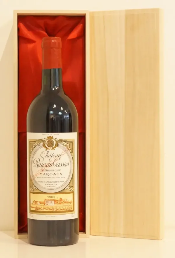 1985年 フランス産1985年 シャトー・ローザン・ガシーのヴィンテージワイン。贈り物やギフトに最適な、格調高い生まれ年ワインです。大切にされたボトル入りのお花が箱に包まれた本品は、特別な贈り物としてきっと喜ばれます。
