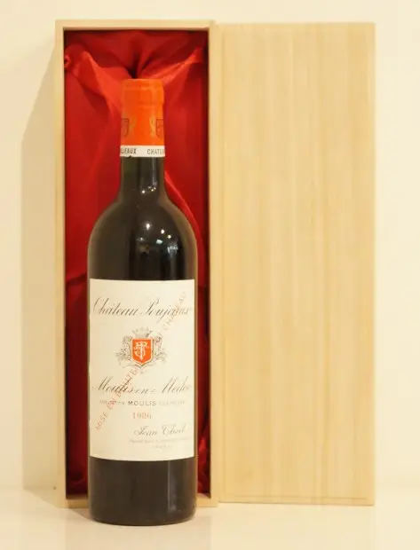 1986年 フランス産1986年 シャトー・プジョーのヴィンテージワイン。贈り物やギフトに最適な、格調高い生まれ年ワインです。大切にされたボトル入りのお花が箱に包まれた本品は、特別な贈り物としてきっと喜ばれます。