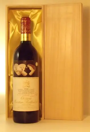 1986年 フランス産1986年 シャトー・ムートン・ロートシルトのヴィンテージワイン。贈り物やギフトに最適な、格調高い生まれ年ワインです。大切にされたボトル入りのお花が箱に包まれた本品は、特別な贈り物としてきっと喜ばれます。