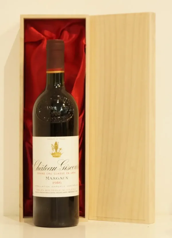 1986年 フランス産1986年 シャトー・ジスクールのヴィンテージワイン。贈り物やギフトに最適な、格調高い生まれ年ワインです。大切にされたボトル入りのお花が箱に包まれた本品は、特別な贈り物としてきっと喜ばれます。