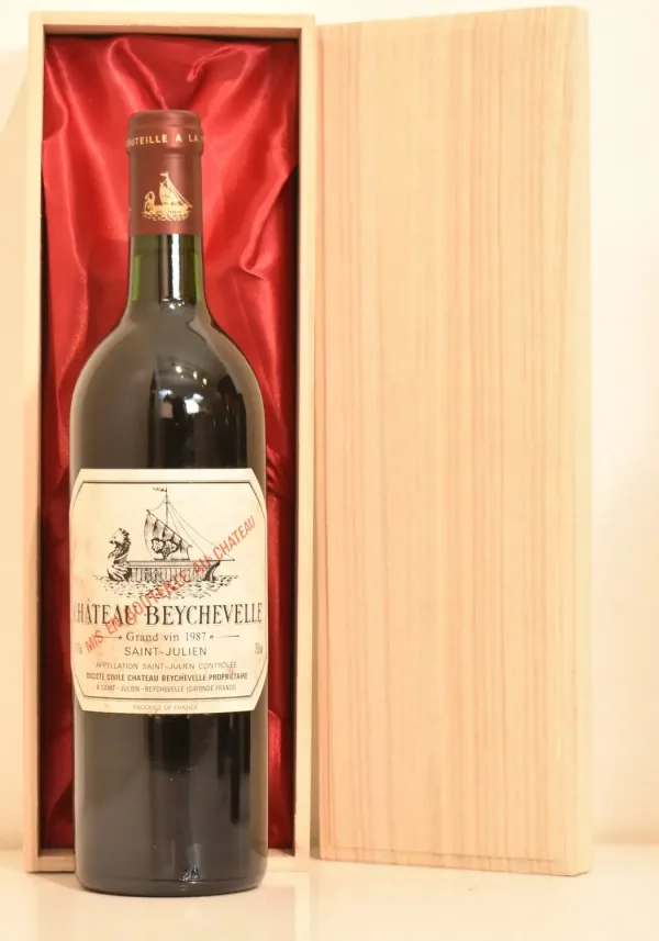 1987年 フランス産1987年 シャトー・ベイシュベルのヴィンテージワイン。贈り物やギフトに最適な、格調高い生まれ年ワインです。大切にされたボトル入りのお花が箱に包まれた本品は、特別な贈り物としてきっと喜ばれます。