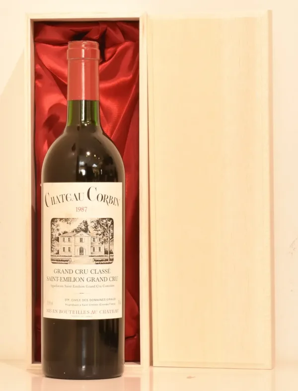 1987年 フランス産1987年 シャトー・コルバンのヴィンテージワイン。贈り物やギフトに最適な、格調高い生まれ年ワインです。大切にされたボトル入りのお花が箱に包まれた本品は、特別な贈り物としてきっと喜ばれます。
