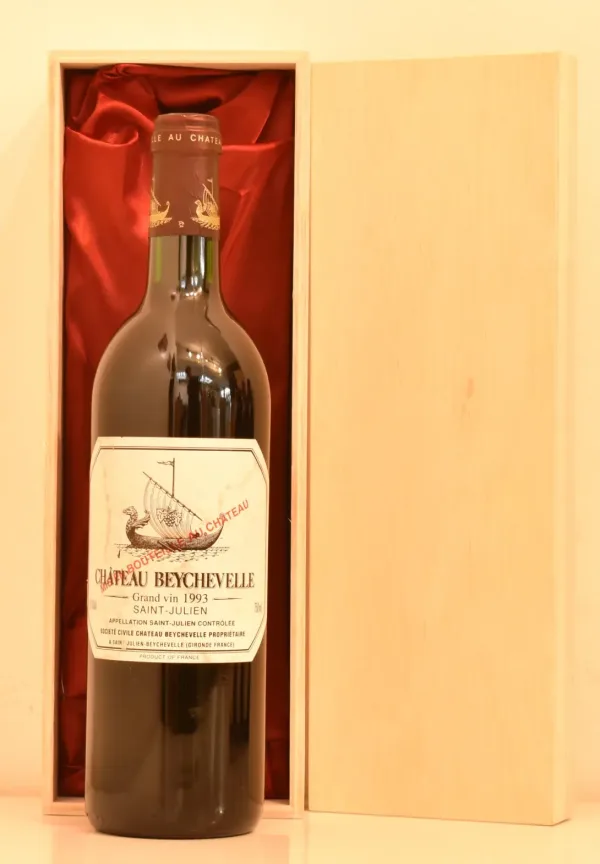 1993年 フランス産1993年 シャトー・ベイシュベルのヴィンテージワイン。贈り物やギフトに最適な、格調高い生まれ年ワインです。大切にされたボトル入りのお花が箱に包まれた本品は、特別な贈り物としてきっと喜ばれます。