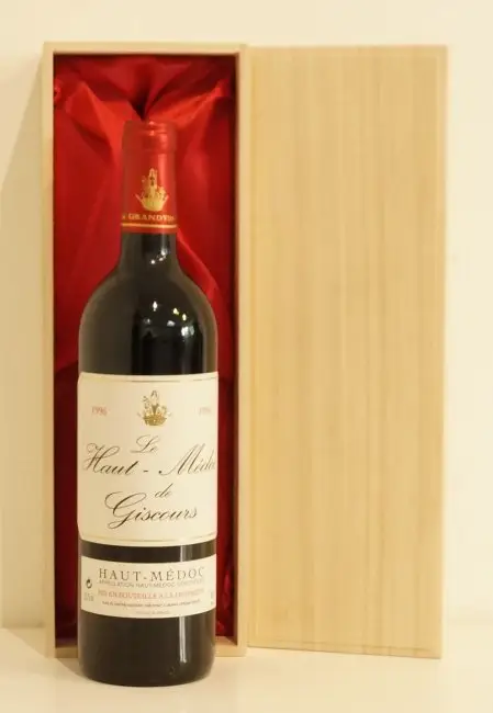 1996年 フランス産1996年 ル・オー・メドック・ド・ジスクール 1996のヴィンテージワイン。贈り物やギフトに最適な、格調高い生まれ年ワインです。大切にされたボトル入りのお花が箱に包まれた本品は、特別な贈り物としてきっと喜ばれます。